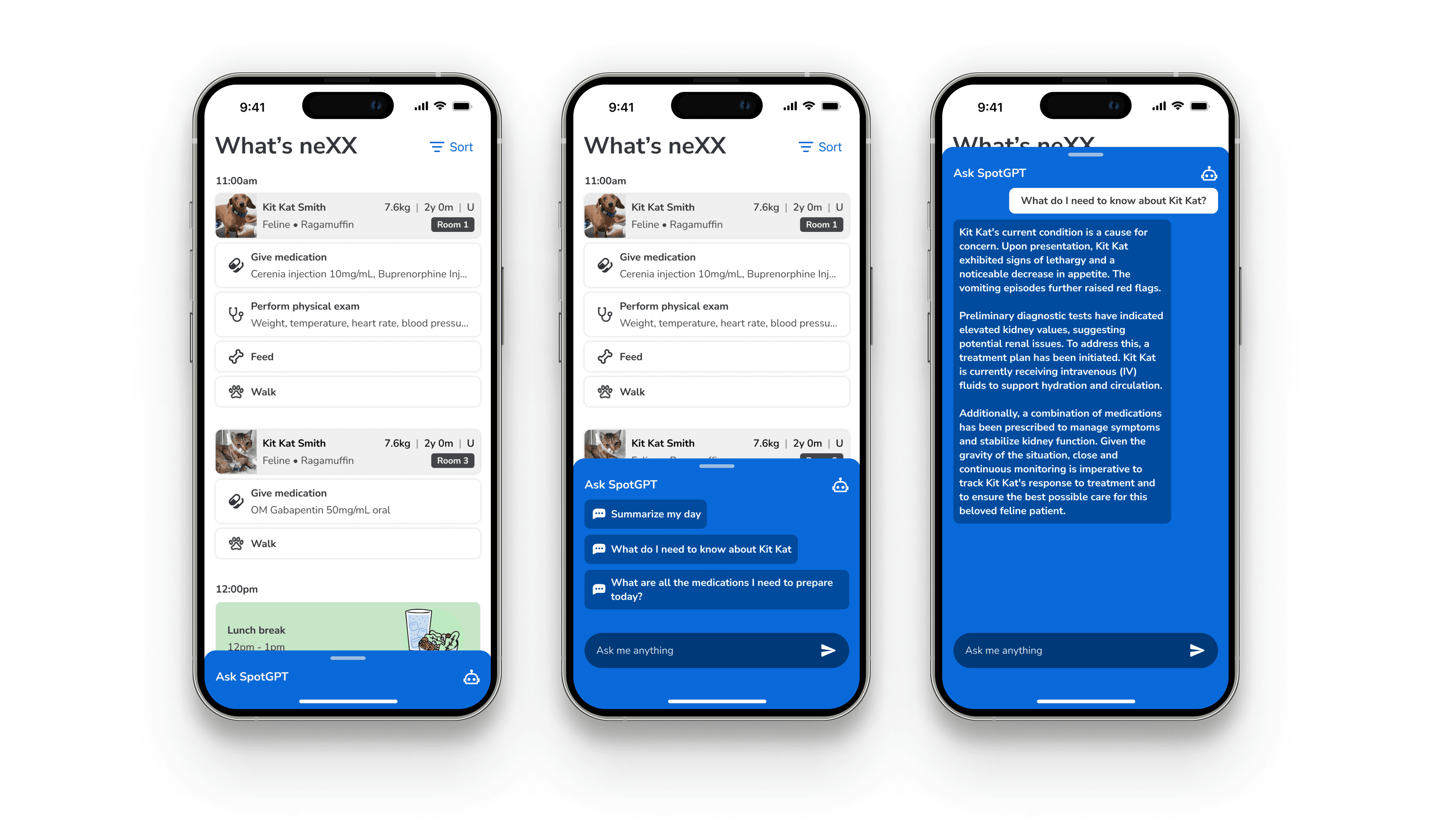 A software engineer and I competed and won IDEXX's company-wide annual hackathon "Innovate." What’s NeXX is an AI-empowered mobile application designed for nurse scheduling and prioritization.