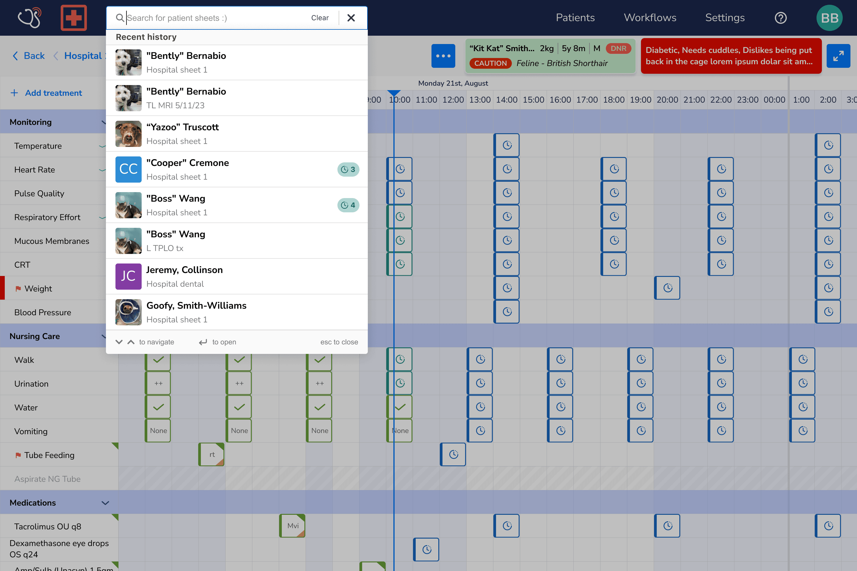 Clinicians often juggle between multiple patients. Making the navigation between patients easier would allow clinicians to complete their goals faster.